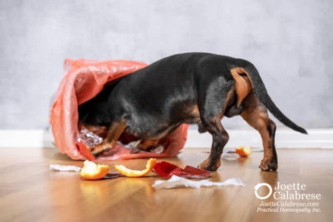 It makes no difference if it’s a dog vomiting after getting into the garbage or a human made sick from eating bad food from an unclean restaurant. (After all, garbage is garbage.) Indeed, we would consider the same medicines in the same potency with the same frequency.