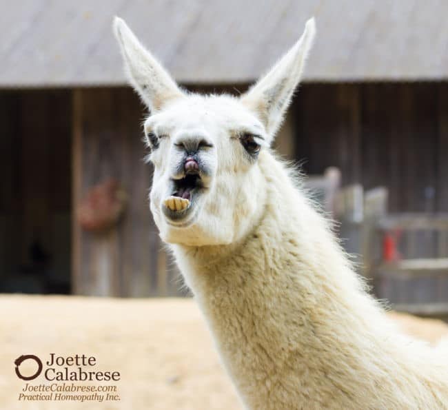 Heck, I’ve even treated llamas! And let me tell you, one in particular was a baaaaaaad llama. I’m not sure what the world had done to make her that mad, but she was one angry llama. She’d kick, butt, and spit. But homeopathy — As I recall, we used Stramonium — turned her behavior around (just as it did for my own child, for a different set of circumstances) as detailed in Podcast 94: Stramonium and the Swiss Family Robinson, as well as one of my student’s children in The Angry Child.