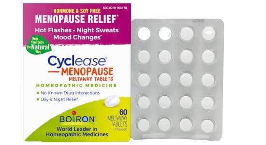 Our trusted friends at Boiron® have created a proprietary combination remedy called Cyclease® Menopause that “works naturally with the body to temporarily relieve hot flashes, night sweats, and mood changes associated with menopause and perimenopause.”