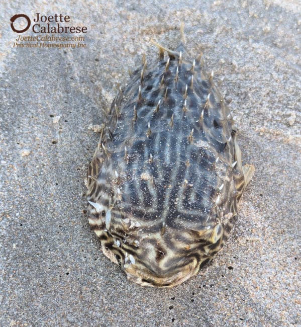 However, because of Paul’s stupor after his head injury, his little fin accidentally dropped the tube of Arnica, and it washed ashore. Unfortunately, Paul Pufferfish does not have a Boiron account, so he couldn’t order more. So, he decided to look onshore.