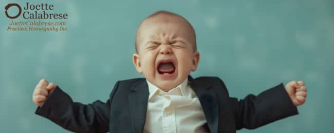 Keep in mind that I’m not talking about mild pain. Pain calling for Chamomilla is severe; the person can be found screaming and demanding relief, perhaps even with anger and rage. As we mentioned earlier, because we can’t hear or see pain, we use the symptoms (as described by the sufferer) and our observation of their behavior.